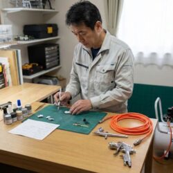 エアーコンプレッサーの騒音は、原因を理解し、段階的に対策を行うことで大きく改善できます。設置場所の工夫や防振対策といった簡単な方法から始め、必要に応じて防音ボックスや機種変更を検討するとよいでしょう。