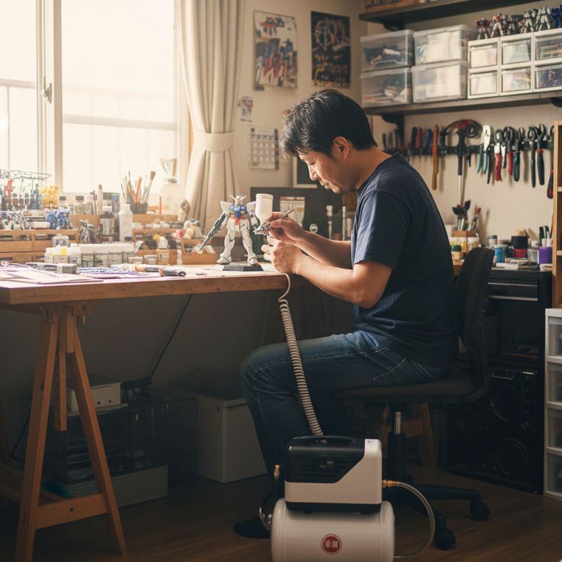 DIYや模型製作、エアブラシ作業では、静音モデルは非常に相性が良いです。この用途に限れば、静音 エアーコンプレッサー 本当に静か?という疑問には自信を持って「はい」と答えられます。